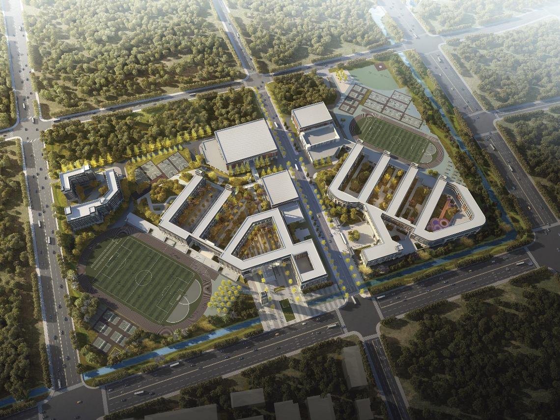 主要建设内容为新建10轨60班小学及16轨48初中,新建教学楼、行政楼、食堂、宿舍、风雨操场及景观绿化等配套设施。